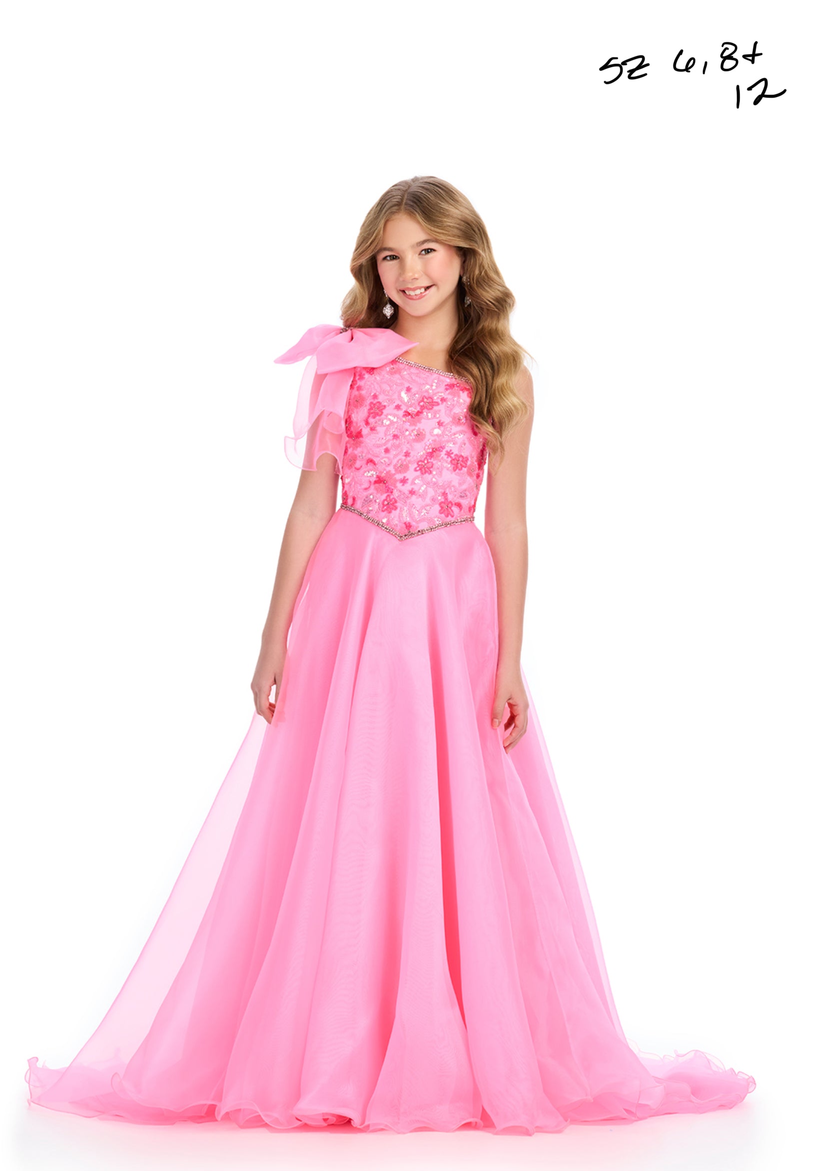 Get ready to shine brighter than ever! This gorgeous ball gown features a fully beaded bustier, one shoulder neckline and adorable oversized bow. Complete with a fabulous organza skirt, this dress is sure to capture the spotlight!